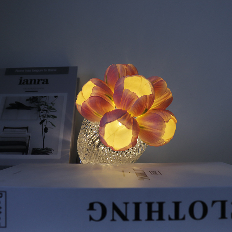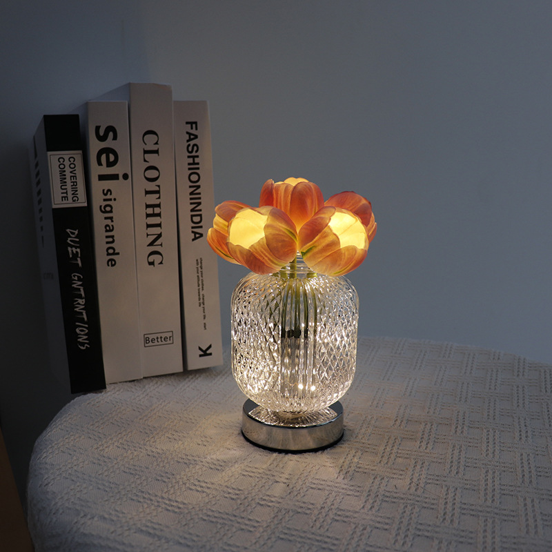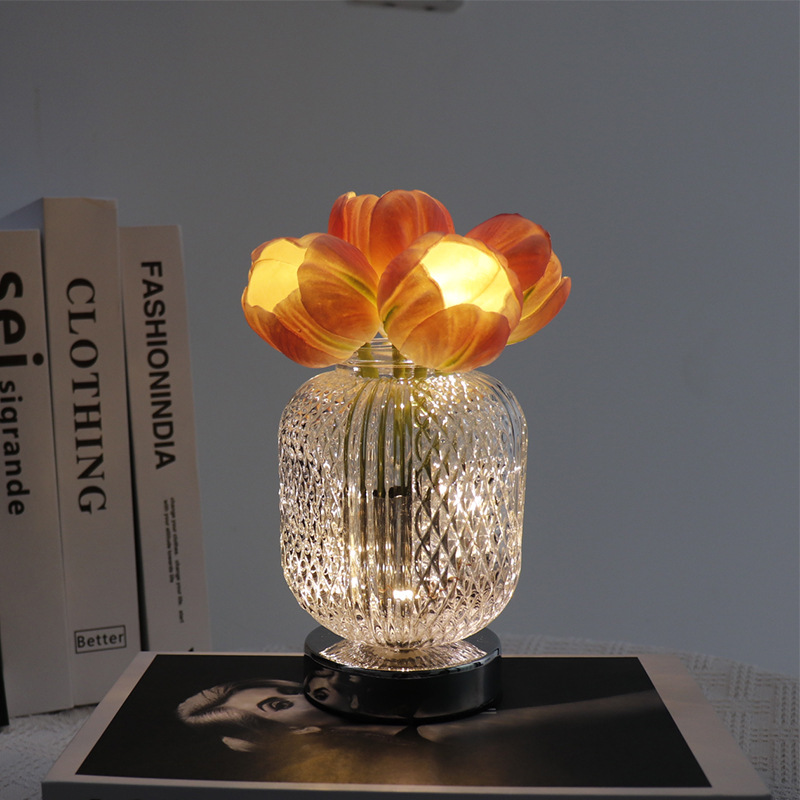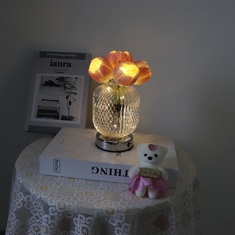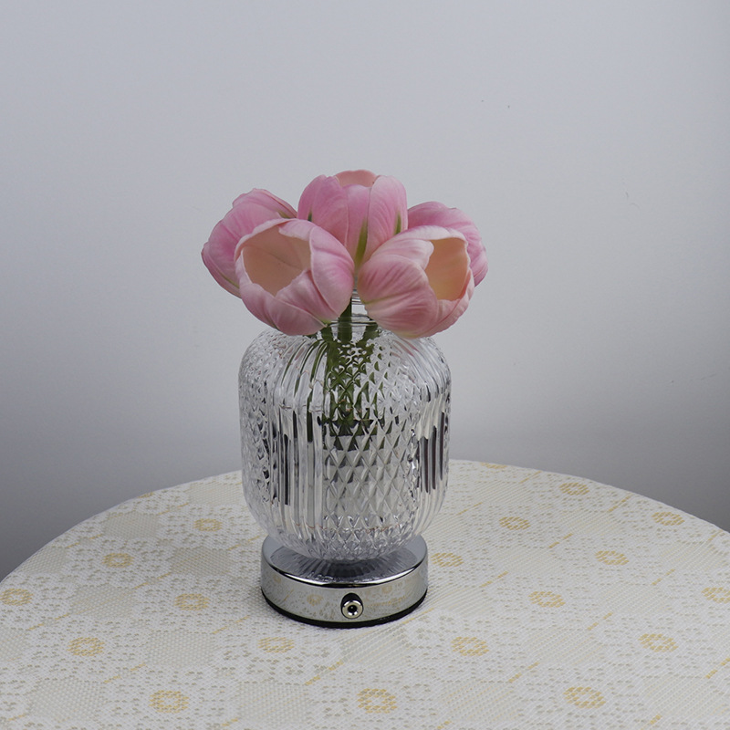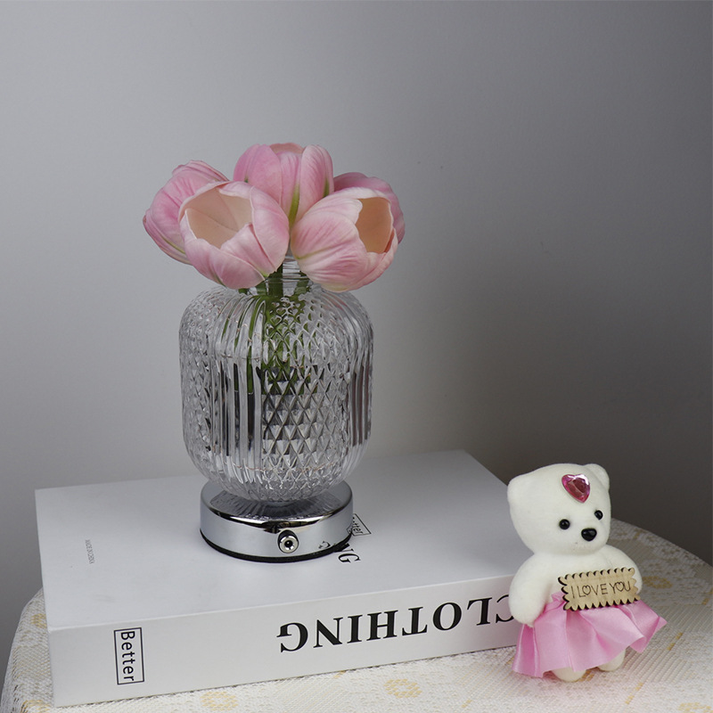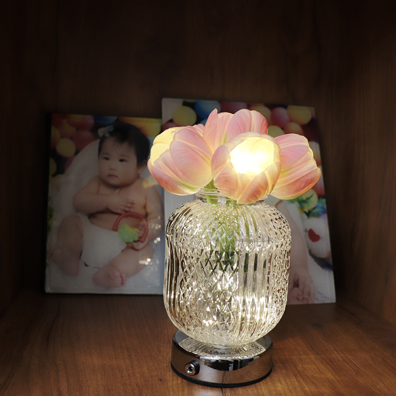 Light Color : 6 pink tulip glass vase (stepless dimming + touch switch + USB charging cable)